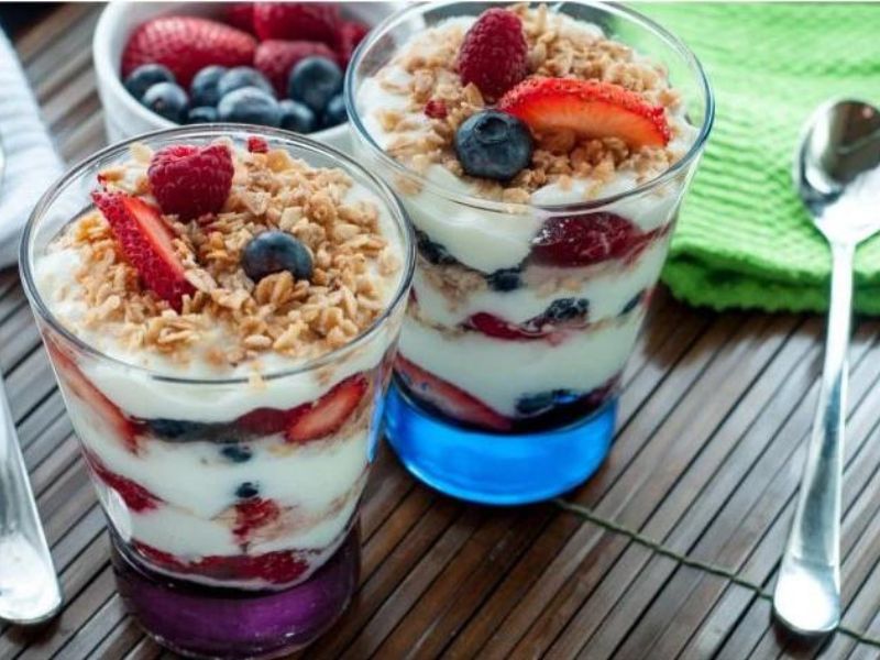 - Sữa chua hoa quả: Thêm dâu tây, xoài, kiwi để tăng hương vị và màu sắc.